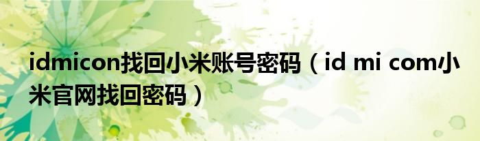 idmicon找回小米账号密码(idmicom小米官网找回密码)
