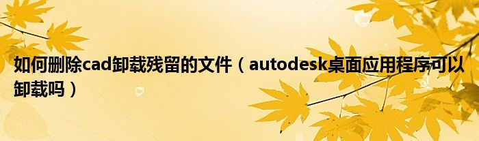 关于如何删除cad卸载残留的文件,autodesk桌面应用程序可以卸载吗这个很多人还不知道,今天菲菲来为大家解答以上的问题,现在让我们一起来看看吧!