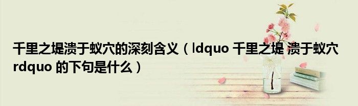 关于千里之堤溃于蚁穴的深刻含义,ldquo 千里之堤 溃于蚁穴 rdquo 的下句是什么这个很多人还不知道,今天菲菲来为大家解答以上的问题,现在让我们一起来看看吧!