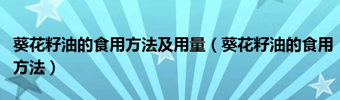 关于葵花籽油的食用方法及用量,葵花籽油的食用方法这个很多人还不知道,今天菲菲来为大家解答以上的问题,现在让我们一起来看看吧!