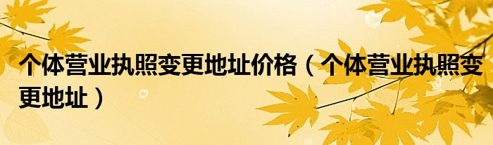 关于个体营业执照变更地址价格,个体营业执照变更地址这个很多人还不知道,今天菲菲来为大家解答以上的问题,现在让我们一起来看看吧!