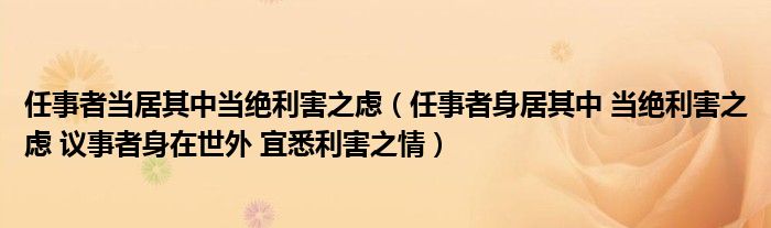 任事者当居其中当绝利害之虑(任事者身居其中 当绝利害之虑 议事者身在世外 宜悉利害之情)