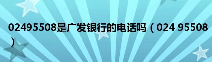 大家好,小华来为大家解答以上的问题。02495508是广发银行的电话吗,024 95508这个很多人还不知道,现在让我们一起来看看吧!