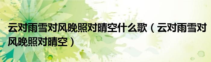 关于云对雨雪对风晚照对晴空什么歌,云对雨雪对风晚照对晴空这个很多人还不知道,今天菲菲来为大家解答以上的问题,现在让我们一起来看看吧!