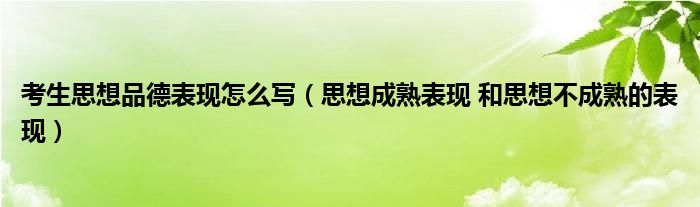 关于考生思想品德表现怎么写,思想成熟表现 和思想不成熟的表现这个很多人还不知道,今天菲菲来为大家解答以上的问题,现在让我们一起来看看吧!