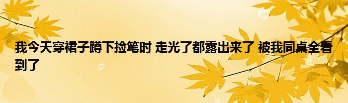 关于我今天穿裙子蹲下捡笔时 走光了都露出来了 被我同桌全看到了这个很多人还不知道,今天菲菲来为大家解答以上的问题,现在让我们一起来看看吧!