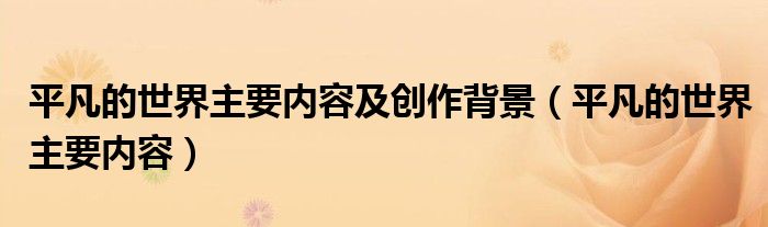 大家好,小联来为大家解答以上的问题。平凡的世界主要内容及创作背景,平凡的世界主要内容这个很多人还不知道,现在让我们一起来看看吧!