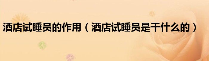 关于酒店试睡员的作用,酒店试睡员是干什么的这个很多人还不知道,今天菲菲来为大家解答以上的问题,现在让我们一起来看看吧!