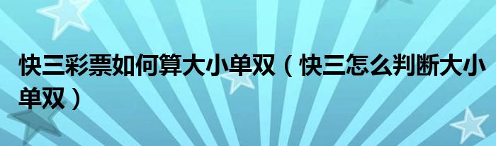 关于快三彩票如何算大小单双,快三怎么判断大小单双这个很多人还不知道,今天菲菲来为大家解答以上的问题,现在让我们一起来看看吧!