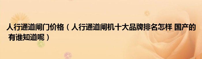 关于人行通道闸门价格,人行通道闸机十大品牌排名怎样 国产的 有谁知道呢这个很多人还不知道,今天菲菲来为大家解答以上的问题,现在让我们一起来看看吧!