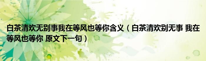 关于白茶清欢无别事我在等风也等你含义,白茶清欢别无事 我在等风也等你 原文下一句这个很多人还不知道,今天菲菲来为大家解答以上的问题,现在让我们一起来看看吧!