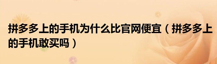 大家好,小夏来为大家讲解下。拼多多上的手机为什么比官网便宜,拼多多上的手机敢买吗很多人还不知道,现在让我们一起来看看吧!