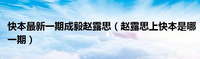 大家好,小夏来为大家讲解下。快本最新一期成毅赵露思,赵露思上快本是哪一期很多人还不知道,现在让我们一起来看看吧!