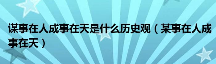 大家好,我是小科,我来为大家解答以上问题。谋事在人成事在天是什么历史观,某事在人成事在天很多人还不知道,现在让我们一起来看看吧!