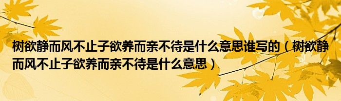 大家好,我是小科,我来为大家解答以上问题。树欲静而风不止子欲养而亲不待是什么意思谁写的,树欲静而风不止子欲养而亲不待是什么意思很多人还不知道,现在让我们一起来看看吧!