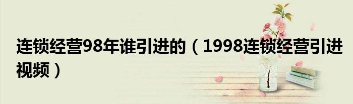 大家好,我是小科,我来为大家解答以上问题。连锁经营98年谁引进的,1998连锁经营引进视频很多人还不知道,现在让我们一起来看看吧!