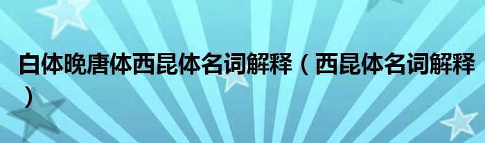 白体晚唐体西昆体名词解释(西昆体名词解释)