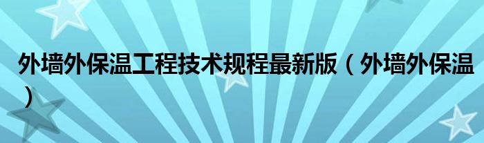 外墙外保温工程技术规程最新版(外墙外保温)