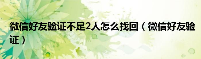 大家好,我是小科,我来为大家解答以上问题。微信好友验证不足2人怎么找回,微信好友验证很多人还不知道,现在让我们一起来看看吧!