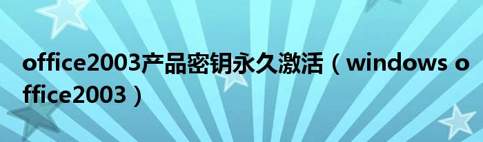 今天小饼为大家解答以下问题,关于office2003产品密钥永久激活,windows office2003很多人还不知道,现在让我们一起来看看吧!
