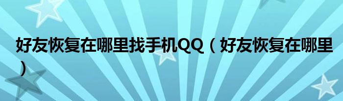 今天小饼为大家解答以下问题,关于好友恢复在哪里找手机QQ,好友恢复在哪里很多人还不知道,现在让我们一起来看看吧!