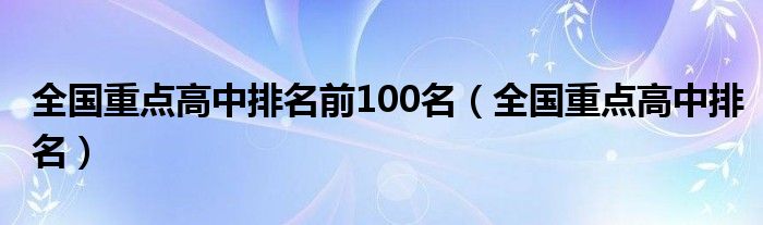 大家好,小晋来为大家解答以下问题,关于全国重点高中排名前100名,全国重点高中排名很多人还不知道,今天让我们一起来看看吧!