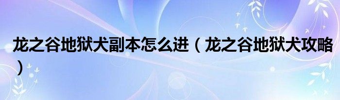 大家好,来宝来为大家解答以下问题,龙之谷地狱犬副本怎么进,龙之谷地狱犬攻略很多人还不知道,今天让我们一起来看看吧!