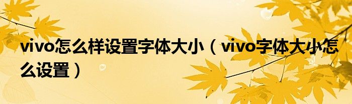 大家好,小晋来为大家解答以下问题,关于vivo怎么样设置字体大小,vivo字体大小怎么设置很多人还不知道,今天让我们一起来看看吧!