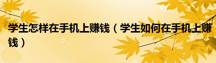 大家好,小晋来为大家解答以下问题,关于学生怎样在手机上赚钱,学生如何在手机上赚钱很多人还不知道,今天让我们一起来看看吧!