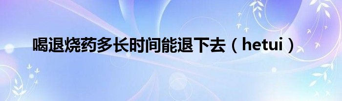 大家好,小晋来为大家解答以下问题,关于喝退烧药多长时间能退下去,hetui很多人还不知道,今天让我们一起来看看吧!