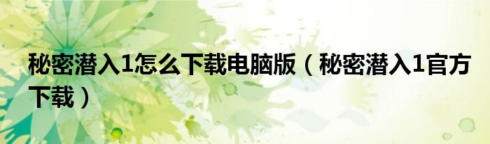 关于秘密潜入1怎么下载电脑版,秘密潜入1官方下载这个很多人还不知道,今天菲菲来为大家解答以上的问题,现在让我们一起来看看吧!