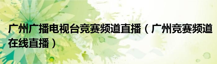 广州广播电视台竞赛频道直播(广州竞赛频道在线直播)