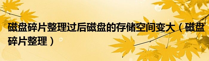 大家好,来宝来为大家解答以下问题,磁盘碎片整理过后磁盘的存储空间变大,磁盘碎片整理很多人还不知道,今天让我们一起来看看吧!