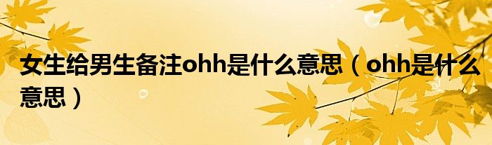 大家好,来宝来为大家解答以下问题,女生给男生备注ohh是什么意思,ohh是什么意思很多人还不知道,今天让我们一起来看看吧!