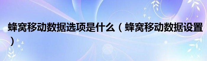 大家好,来宝来为大家解答以下问题,蜂窝移动数据选项是什么,蜂窝移动数据设置很多人还不知道,今天让我们一起来看看吧!
