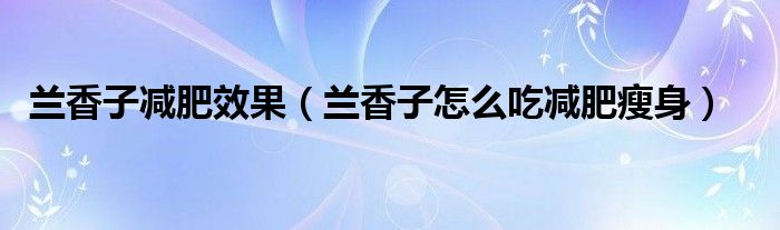 大家好,小晋来为大家解答以下问题,关于兰香子减肥效果,兰香子怎么吃减肥瘦身很多人还不知道,今天让我们一起来看看吧!