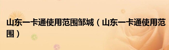 大家好,小晋来为大家解答以下问题,关于山东一卡通使用范围邹城,山东一卡通使用范围很多人还不知道,今天让我们一起来看看吧!