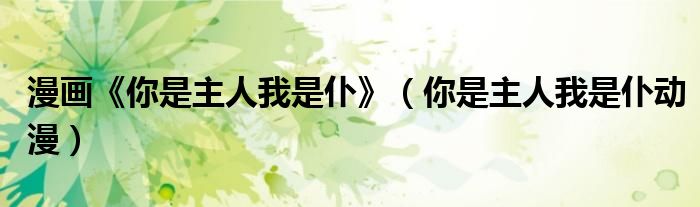 关于漫画《你是主人我是仆》,你是主人我是仆动漫这个很多人还不知道,今天菲菲来为大家解答以上的问题,现在让我们一起来看看吧!