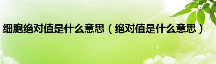 关于细胞绝对值是什么意思,绝对值是什么意思这个很多人还不知道,今天菲菲来为大家解答以上的问题,现在让我们一起来看看吧!