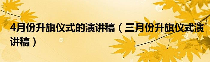 关于4月份升旗仪式的演讲稿,三月份升旗仪式演讲稿这个很多人还不知道,今天菲菲来为大家解答以上的问题,现在让我们一起来看看吧!