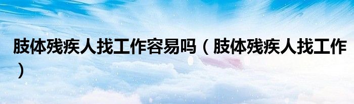 关于肢体残疾人找工作容易吗,肢体残疾人找工作这个很多人还不知道,今天菲菲来为大家解答以上的问题,现在让我们一起来看看吧!