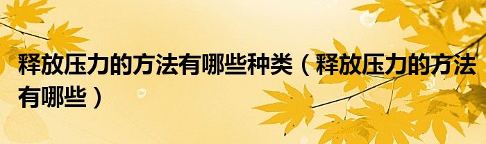 关于释放压力的方法有哪些种类,释放压力的方法有哪些这个很多人还不知道,今天菲菲来为大家解答以上的问题,现在让我们一起来看看吧!