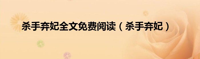 杀手弃妃全文免费阅读,杀手弃妃这个很多人还不知道,小飞来为大家解答以上的问题。现在让我们一起来看看吧!