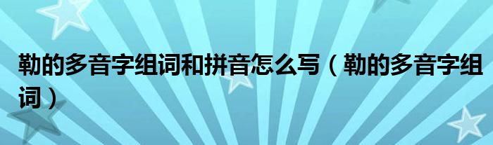 勒的多音字组词和拼音怎么写,勒的多音字组词这个很多人还不知道,小飞来为大家解答以上的问题。现在让我们一起来看看吧!