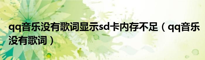 qq音乐没有歌词显示sd卡内存不足,qq音乐没有歌词这个很多人还不知道,小飞来为大家解答以上的问题。现在让我们一起来看看吧!