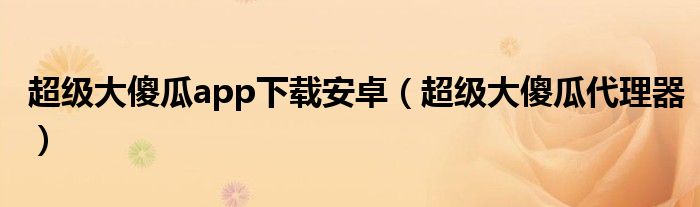 超级大傻瓜app下载安卓,超级大傻瓜代理器这个很多人还不知道,小飞来为大家解答以上的问题。现在让我们一起来看看吧!
