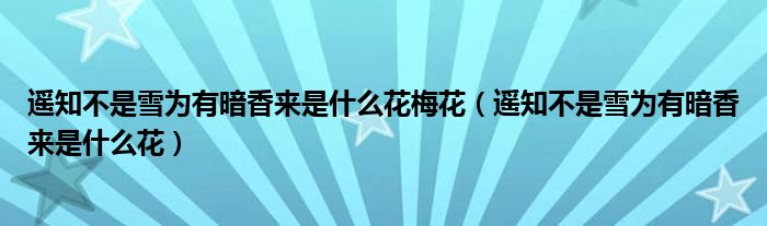 关于遥知不是雪为有暗香来是什么花梅花,遥知不是雪为有暗香来是什么花这个很多人还不知道,今天菲菲来为大家解答以上的问题,现在让我们一起来看看吧!