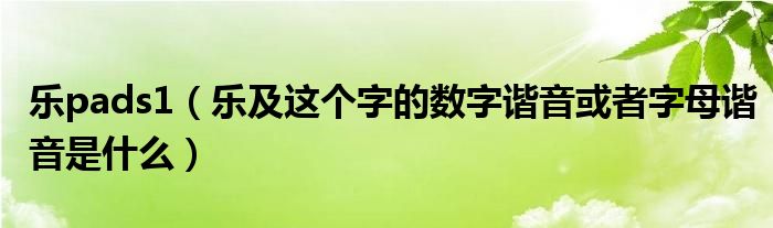 大家好,小常来为大家解答以上问题。乐pads1,乐及这个字的数字谐音或者字母谐音是什么很多人还不知道,现在让我们一起来看看吧!