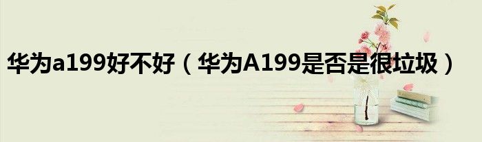 大家好,小常来为大家解答以上问题。华为a199好不好,华为A199是否是很垃圾很多人还不知道,现在让我们一起来看看吧!