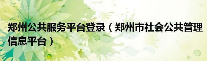 郑州公共服务平台登录(郑州市社会公共管理信息平台)